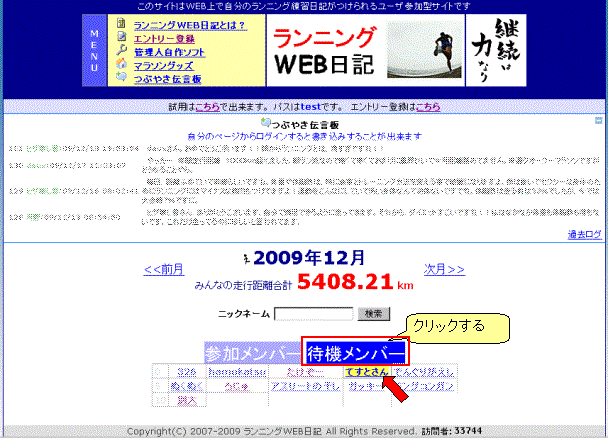 | その月の距離データを入力すると「参加メンバー」に移動します。 |