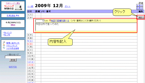 | ▼ランニングWEB日記登録方法 |